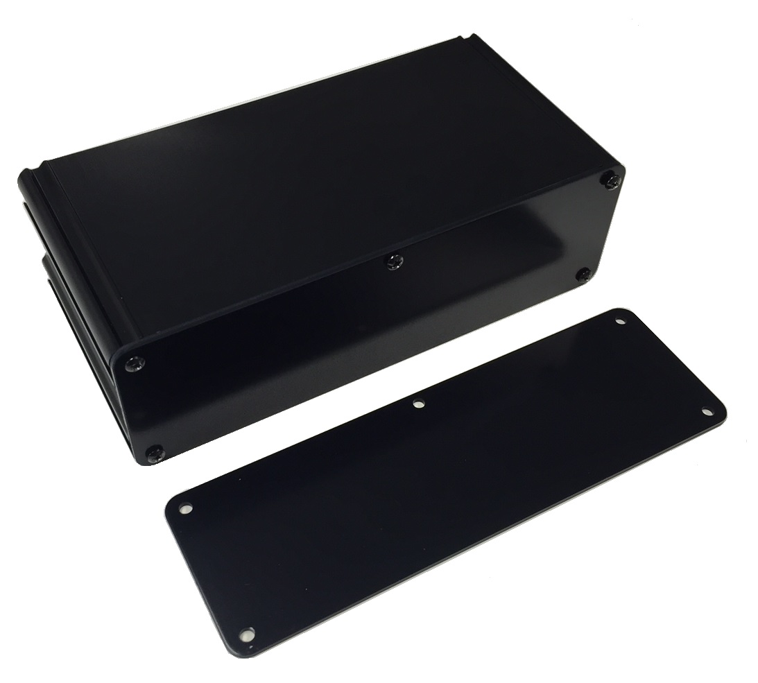 The aluminium extrusion is designed to accept 160mm wide circuit board with components 40mm high. We stock this series in lengths of 80mm, 160mm and 220mm.
