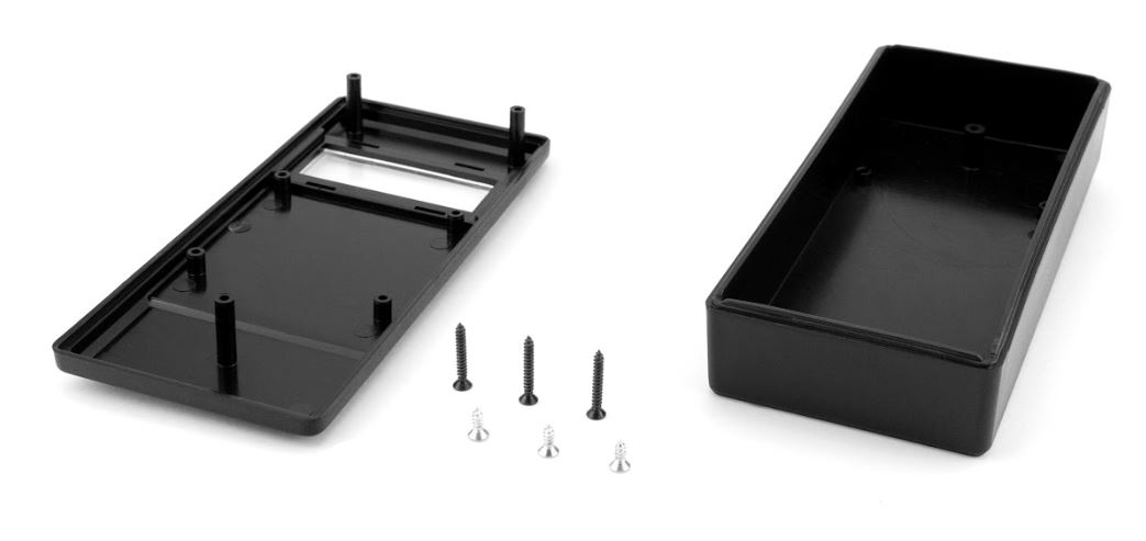 Medium hand held, black case, material ABS, clear LCD window 17 x 45.5mm, screw together, membrane keypad recess 53 x 47.5 mmLOW COST MACHINING.This product can be machined to your specifications at the point of manufacture.Contact us for details.
