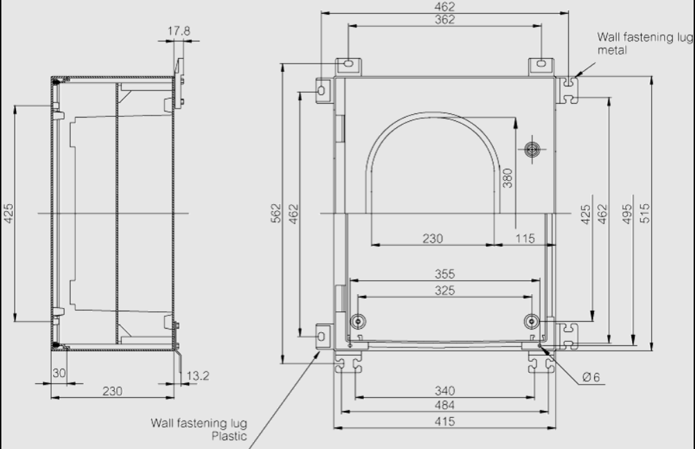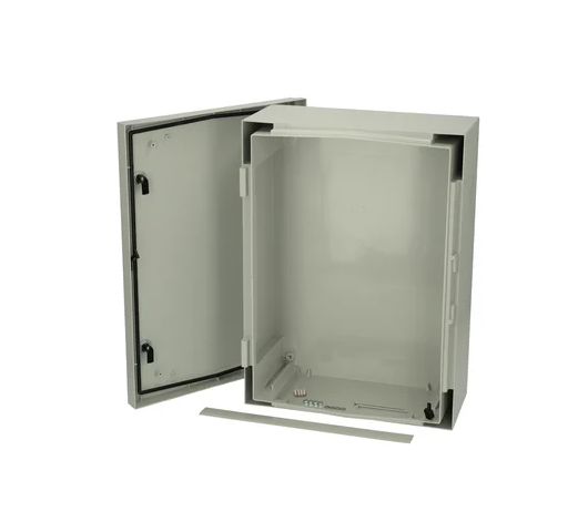 GRP cabinet enclosure – Including : Cabinet base. door with PUR gasket. 3mm double bit lock(s) with transport and plastic key. screws for mounting plate/DIN-rail and wall fastening lugs