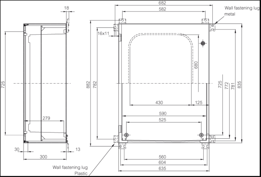GRP cabinet enclosure – Including : Cabinet base. door with PUR gasket. 3mm double bit lock(s) with transport and plastic key. screws for mounting plate/DIN-rail and wall fastening lugs