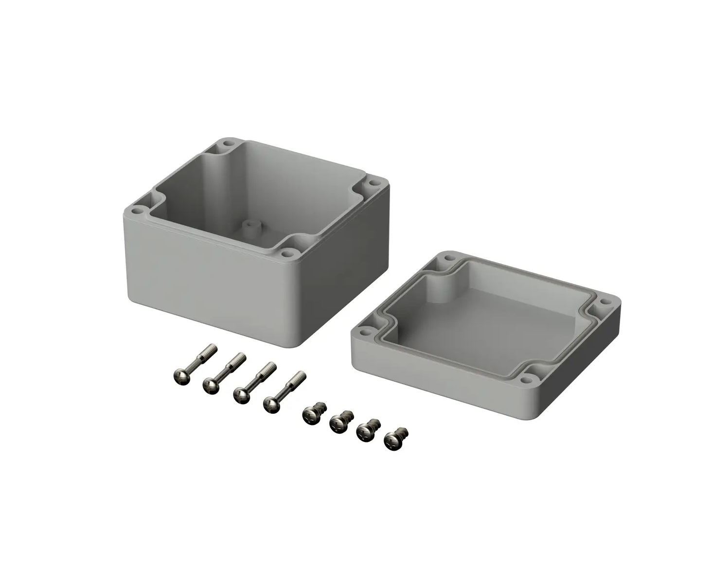 Internally there are mounting points designed to accommodate PCB, din rails and mounting plates. Wall mounting accessories are available to buy however there are existing mounting holes in the base of the enclosure that are situated outside of the sealed area and within the lid which allow for a concealed wall mounting option.