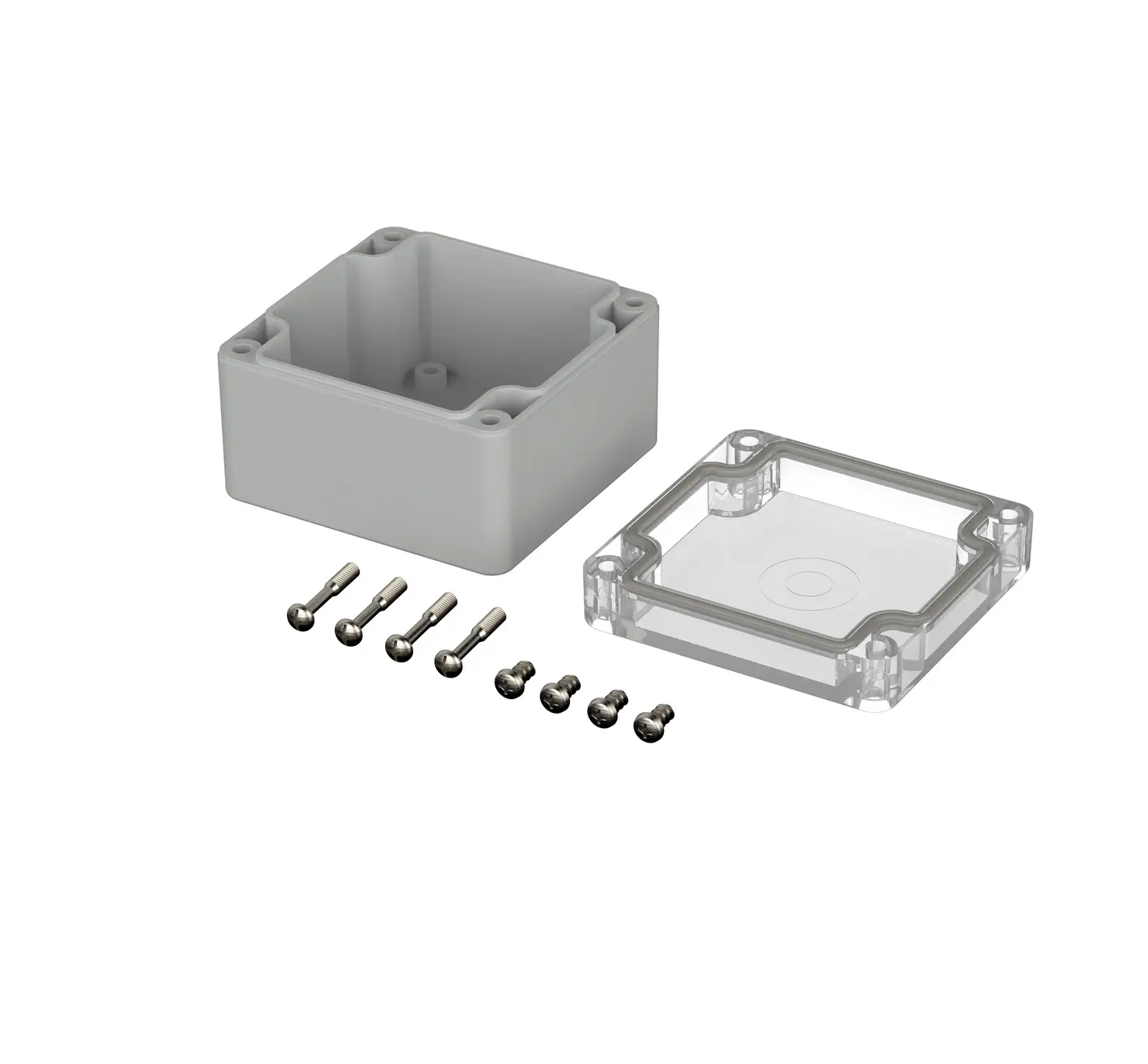 Internally there are mounting points designed to accommodate PCB, din rails and mounting plates. Wall mounting accessories are available to buy however there are existing mounting holes in the base of the enclosure that are situated outside of the sealed area and within the lid which allow for a concealed wall mounting option.