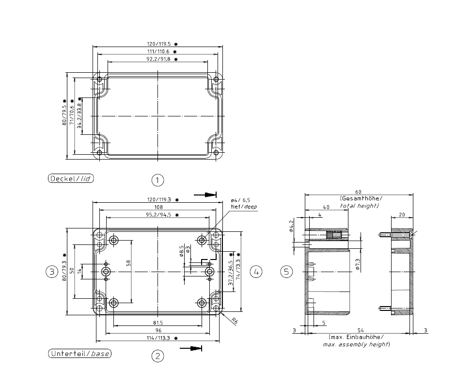 The Euromas are moulded in grey Polycarbonate UL94-V2 material they are capable of withstanding temperatures of -25°C to 110°C, the rugged design allows the enclosure to absorb impact and protect your electronics.