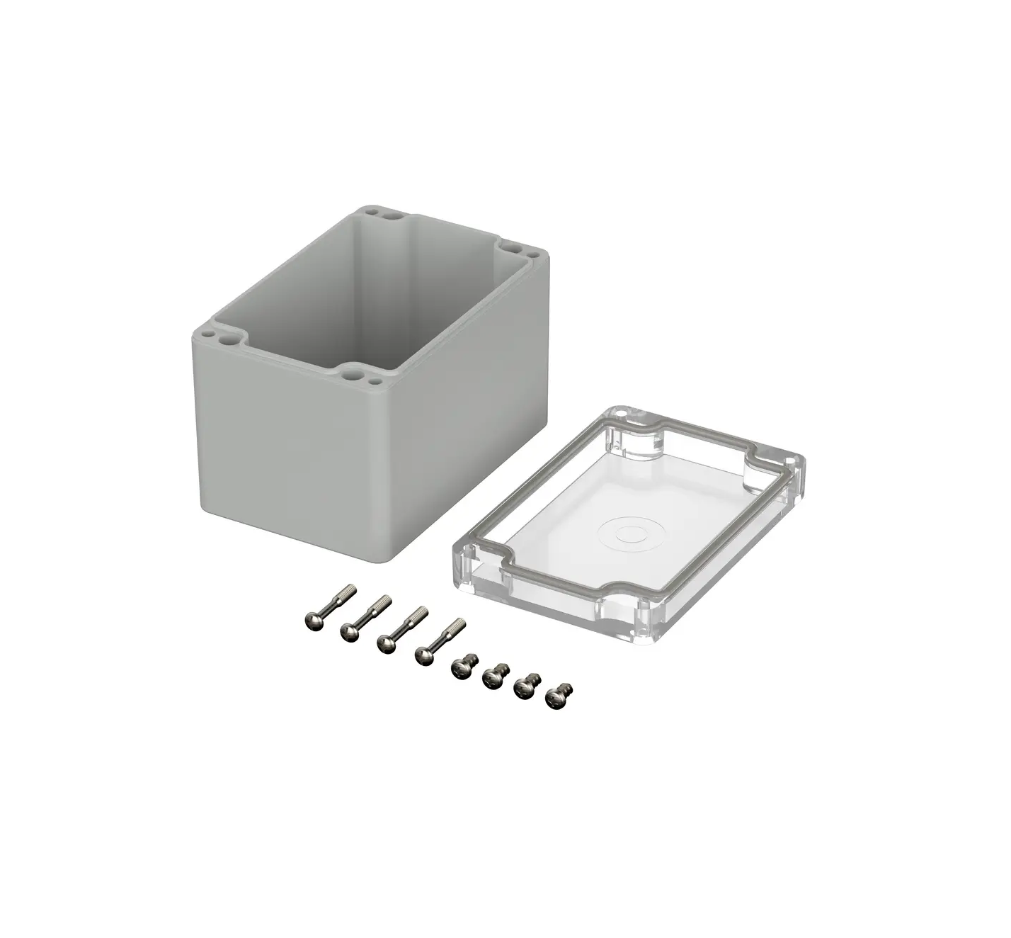 Internally there are mounting points designed to accommodate PCB, din rails and mounting plates. Wall mounting accessories are available to buy however there are existing mounting holes in the base of the enclosure that are situated outside of the sealed area and within the lid which allow for a concealed wall mounting option.