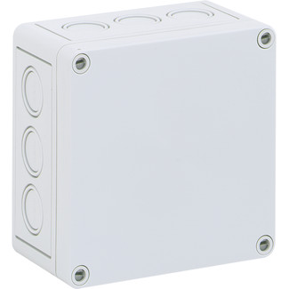 IP66 Polycarbonate Junction box with metric cable gland knockouts 2 x M20 7 x M25/32. colour grey RAL 6018, top cover is opaque grey
