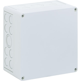 IP66 Polycarbonate Junction box with metric cable gland knockouts 4 x M32/40 24 x M20. colour grey RAL 6018, top cover is opaque grey