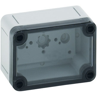 IP66 Polycarbonate Junction box without cable gland knockouts. colour grey RAL 6018, top cover is transparent