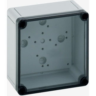 IP66 Polycarbonate Junction box without cable gland knockouts. colour grey RAL 6018, top cover is transparent