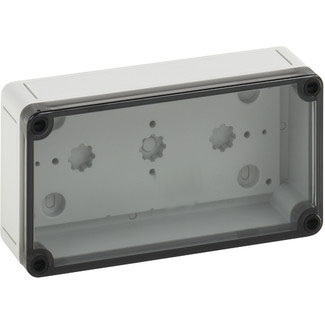 IP66 Polycarbonate Junction box without cable gland knockouts. colour grey RAL 6018, top cover is transparent