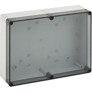 IP66 Polycarbonate Junction box without cable gland knockouts. colour grey RAL 6018, top cover is transparent
