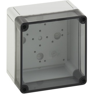 IP66 Polycarbonate Junction box without cable gland knockouts. colour grey RAL 6018, top cover is transparent