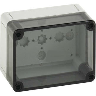IP66 Polycarbonate Junction box without cable gland knockouts. colour grey RAL 6018, top cover is transparent