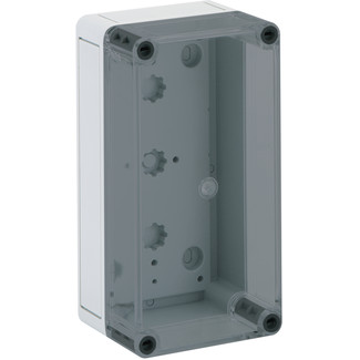 IP66 Polycarbonate Junction box without cable gland knockouts. colour grey RAL 6018, top cover is transparent