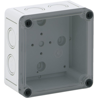 IP66 Polycarbonate Junction box with metric cable gland knockouts 7 x M20/25. colour grey RAL 6018, top cover is transparent