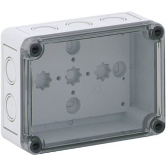 IP66 Polycarbonate Junction box with metric cable gland knockouts 10 x M16/20. colour grey RAL 6018, top cover is transparent