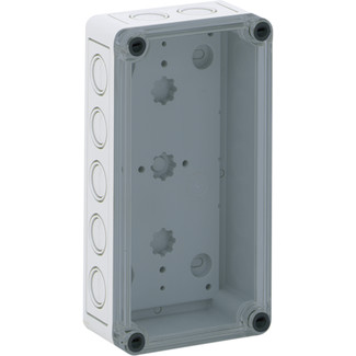 IP66 Polycarbonate Junction box with metric cable gland knockouts 14 x M16/20. colour grey RAL 6018, top cover is transparent
