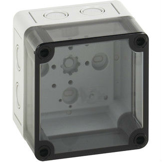 IP66 Polycarbonate Junction box with metric cable gland knockouts 7 x M16/20. colour grey RAL 6018, top cover is transparent