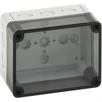 IP66 Polycarbonate Junction box with metric cable gland knockouts 10 x M16/20. colour grey RAL 6018, top cover is transparent