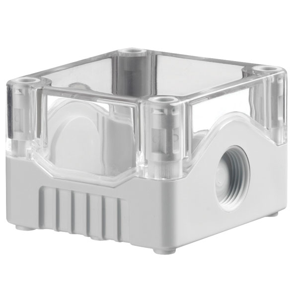The DE0 series of junction boxes are moulded in both ABS and polycarbonate material. Both materials are available in black and grey with a clear lid option. There are a total of eight sizes in this range.