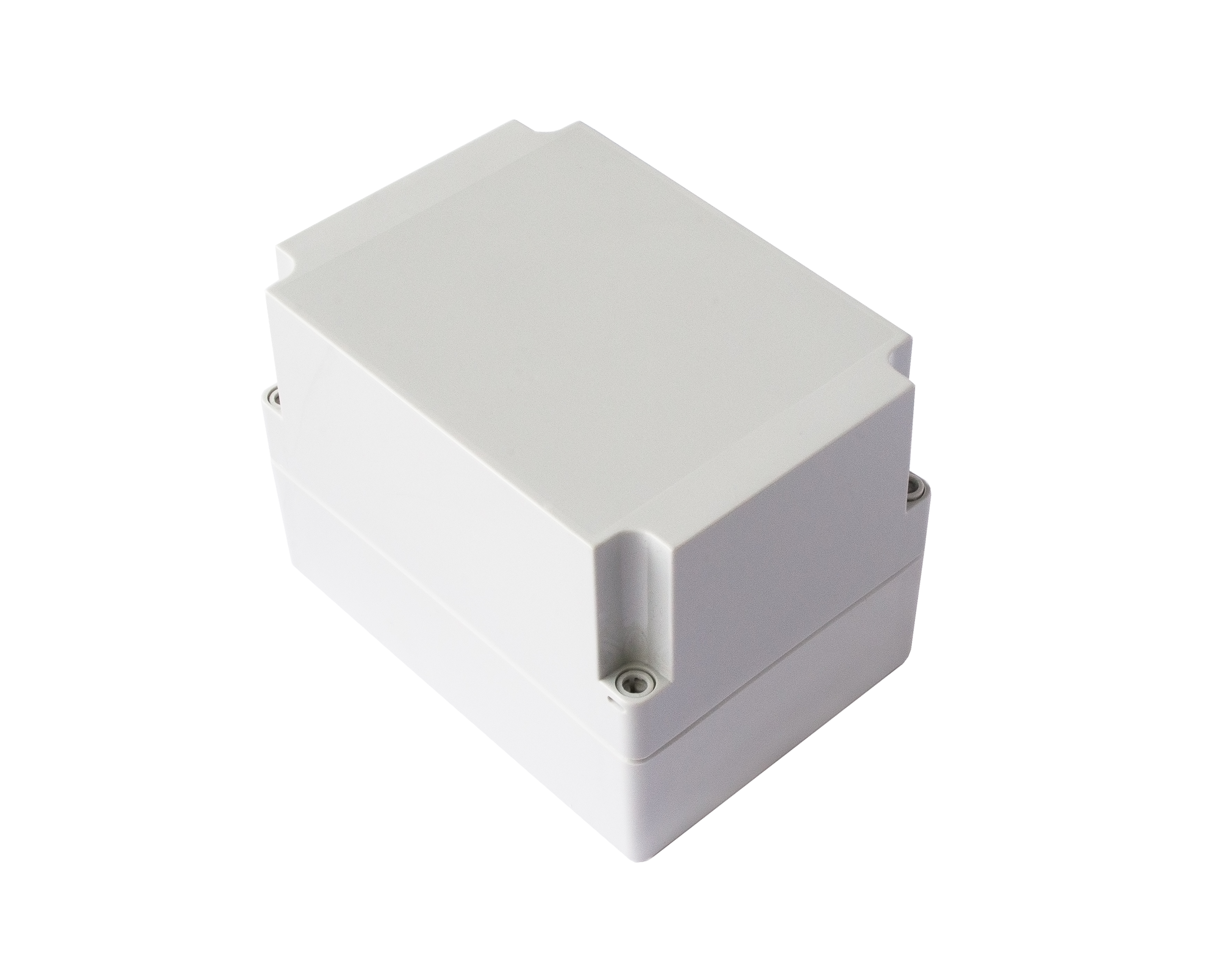 Grey ABS, IK08, IP66 junction box. Features captive plastic screws, slots for vertical PCB mounting and supplied with a 35mm Din rail with fixing screws. RAL7035