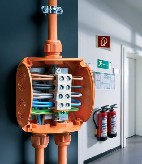 - intrinsic fire resistance in accordance with DIN 4102 Part 12 (German standard) in combination with function-retaining cables
