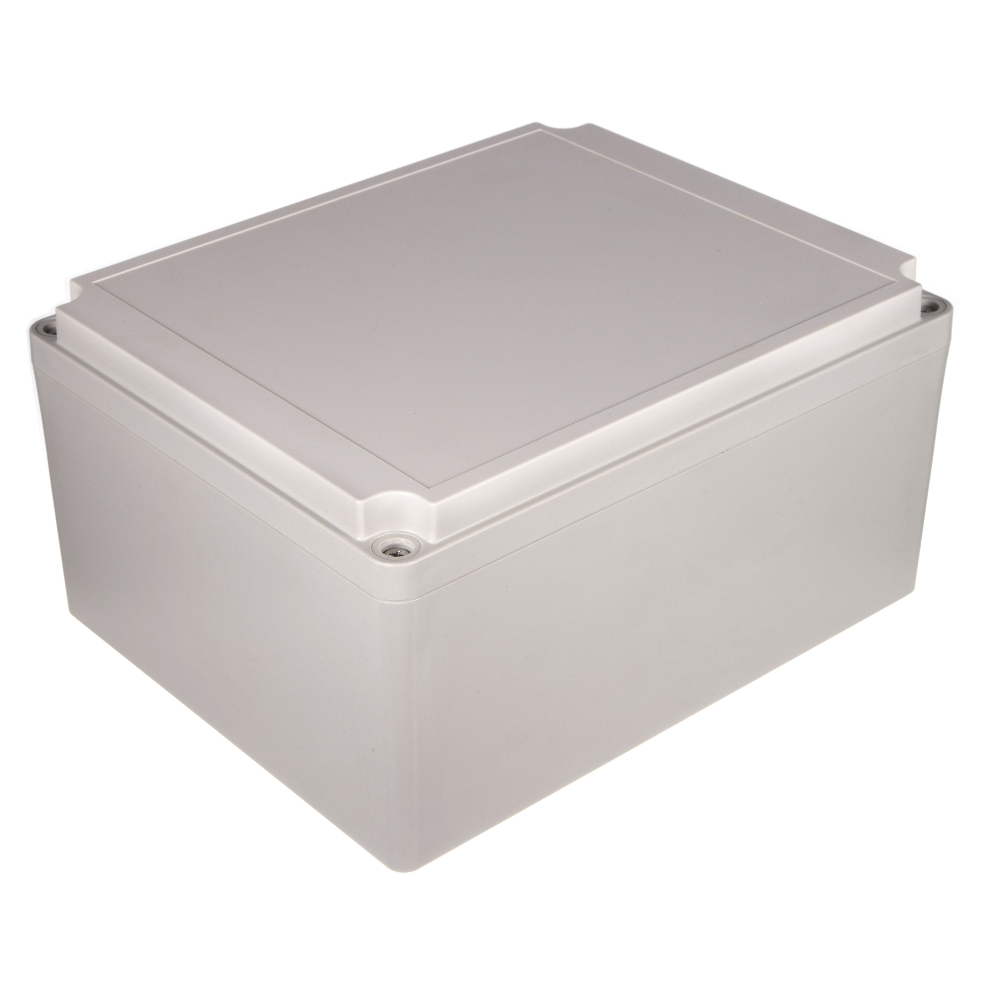 IP65 ABS Flame retardant, internal mounting PCB fixing pillars, all fixings supplied. Light grey