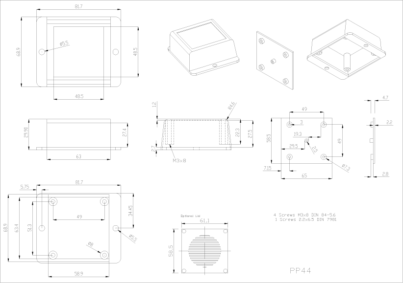 Medium flanged case, wall mounting, desk mounting, smooth finish, recessed top 49 x 49 x 1mm, black, material ABS, screw together, internal PCB stand off'sLOW COST MACHINING.This product can be machined to your specifications at the point of manufacture.Contact us for details.