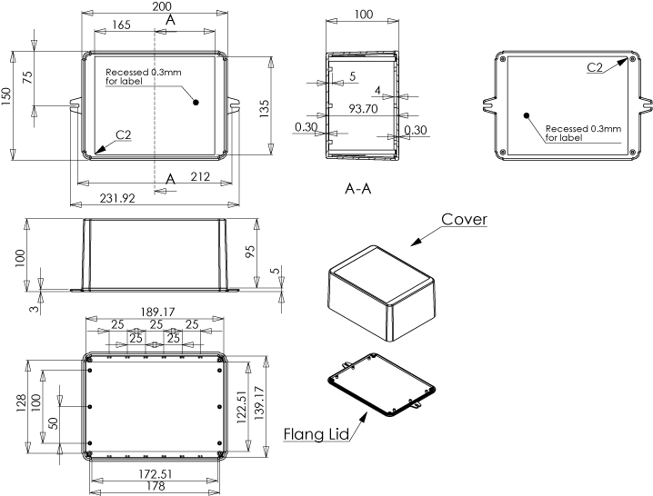 The lid and base feature a recess area ideal for labels, overlays and silk screening.