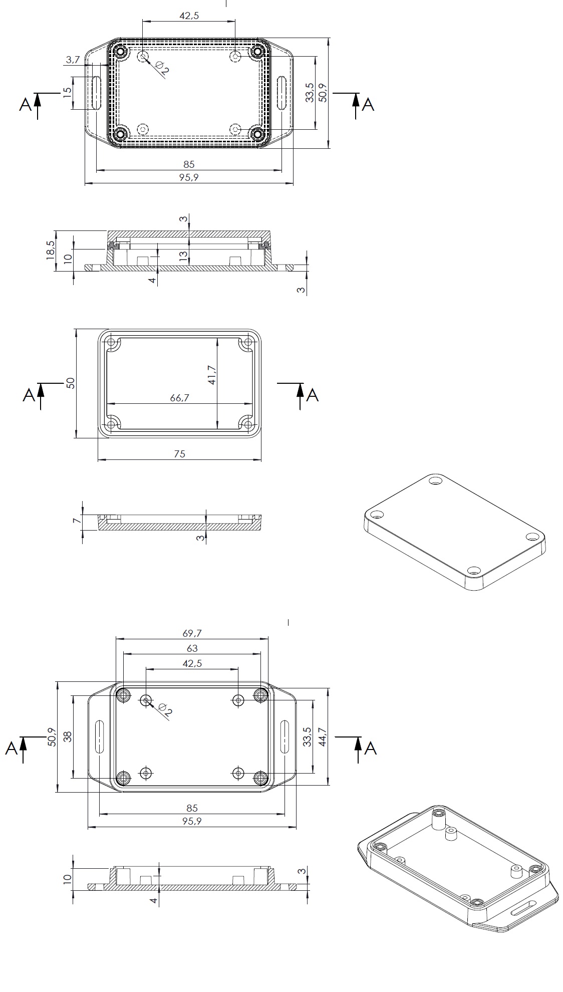 The enclosure is available in both Black and Grey, the gaskets are available in Red, Blue and Yellow.