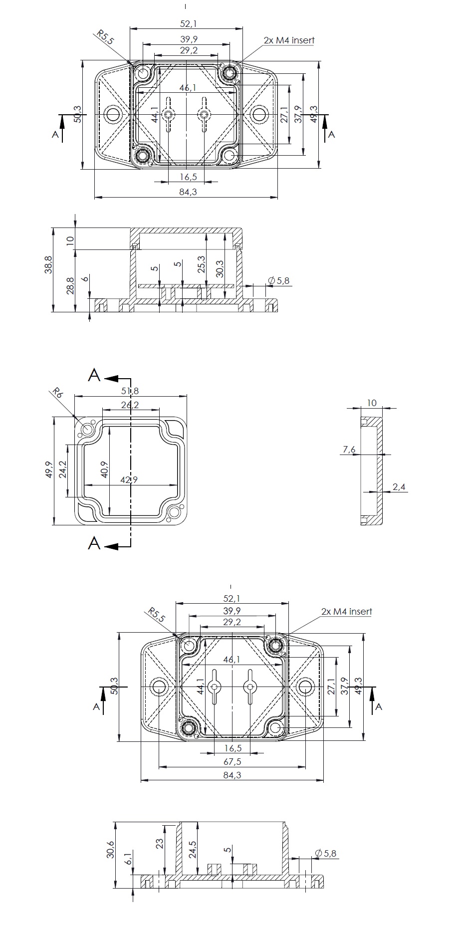 Internally the base benefits from PCB mounts in the base and the external flanges allow for the enclosure to be seamlessly wall mounted without compromising the IP rating.