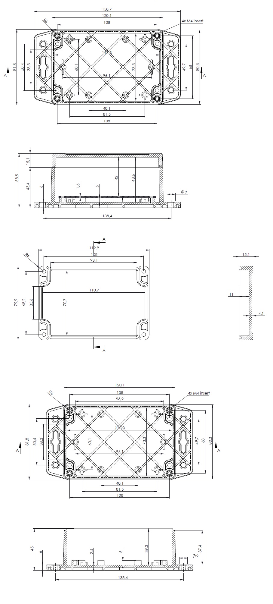 Internally the base benefits from PCB mounts in the base and the external flanges allow for the enclosure to be seamlessly wall mounted without compromising the IP rating.