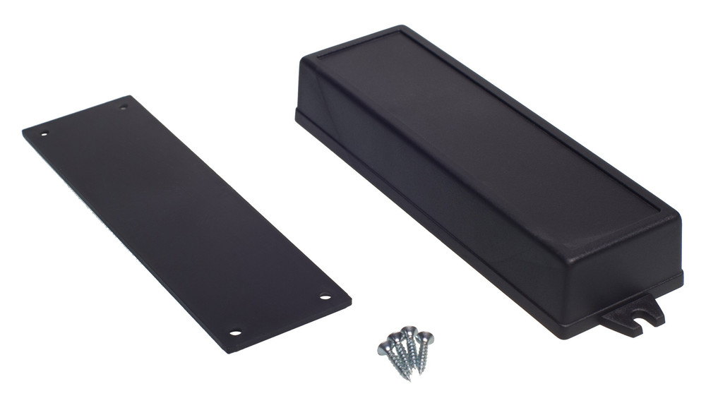 The construction of the case allows you to populate the box and secure the base with the fixings provided before wall mounting. Once the enclosure is wall mounted the open side will sit flush to the wall reducing the risk of tamper. The recessed area on the top of enclosure is suitable for use with adhesive labels and membranes.
