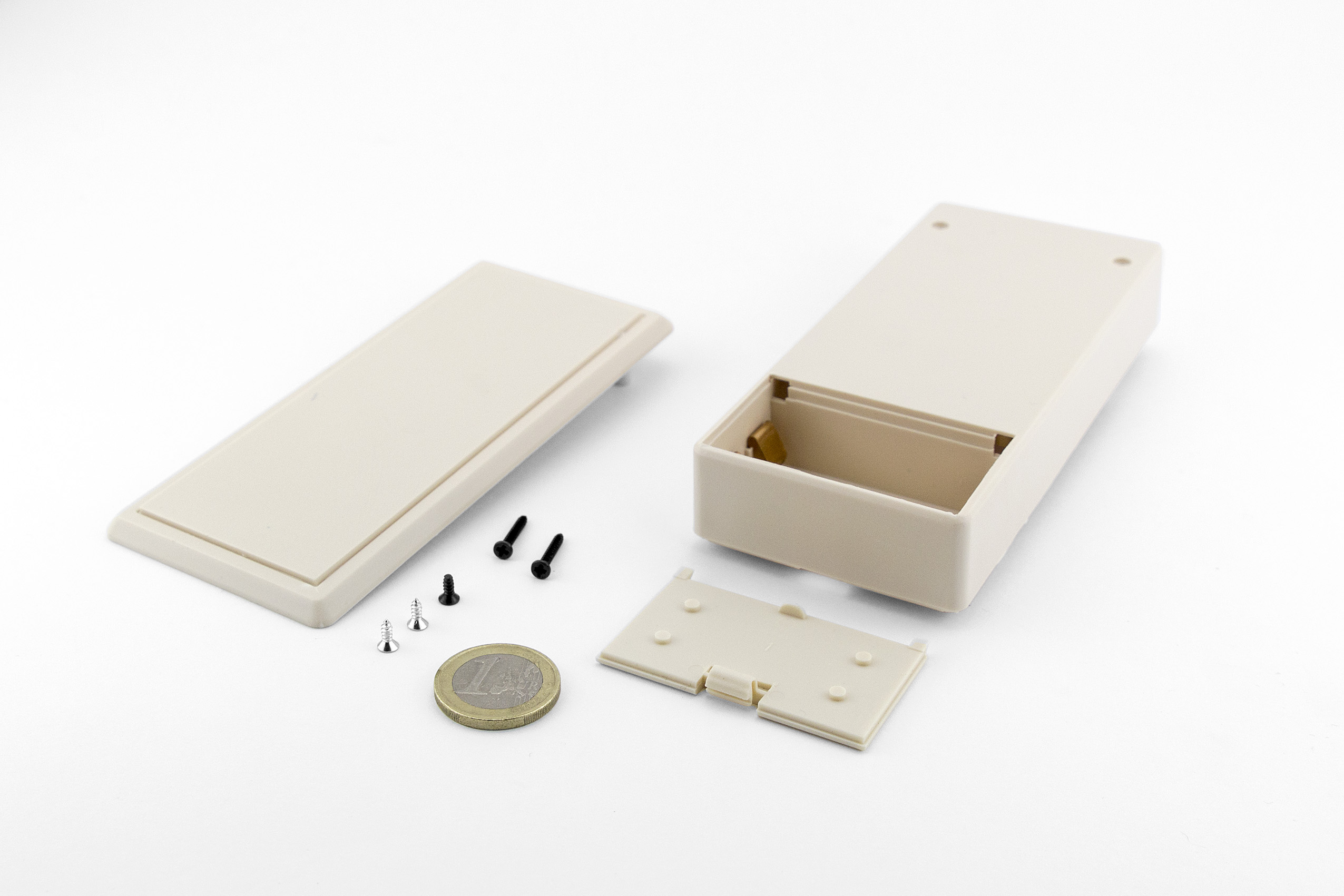 Medium hand held, screw together ivory case, battery compartment for 1 x 9v or 2 x AA, material ABS.