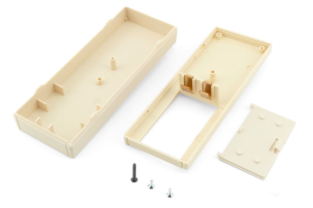 Medium hand held, screw together, ivory, battery compartment for 1 x 9v or 2 x AA, internal PCB stand off’s, material ABS