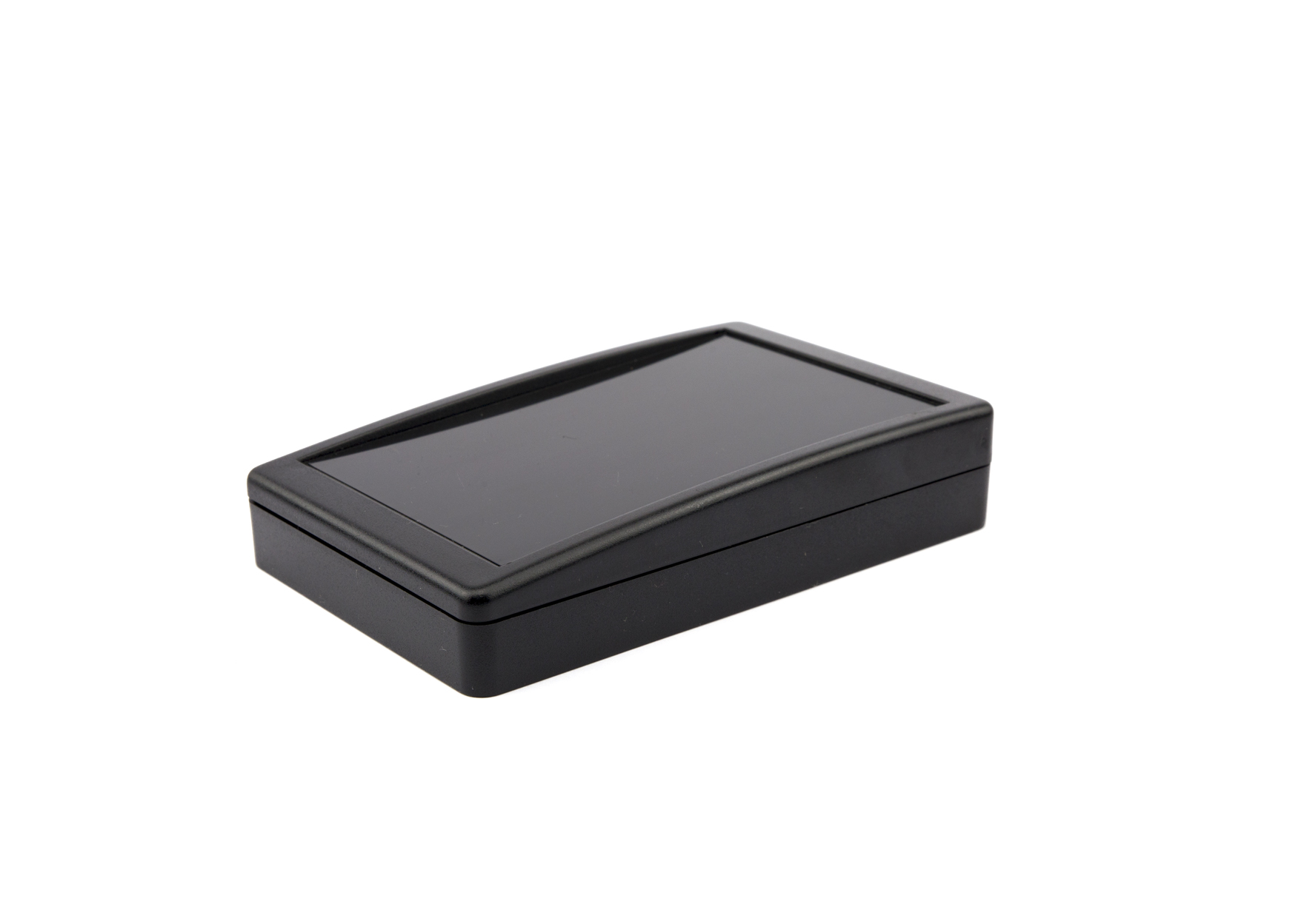 Medium hand held case with stylised half moon effect recessed top 110 x 73mm in black or grey, material ABS. LOW COST MACHINING.This product can be machined to your specifications at the point of manufacture.Contact us for details.