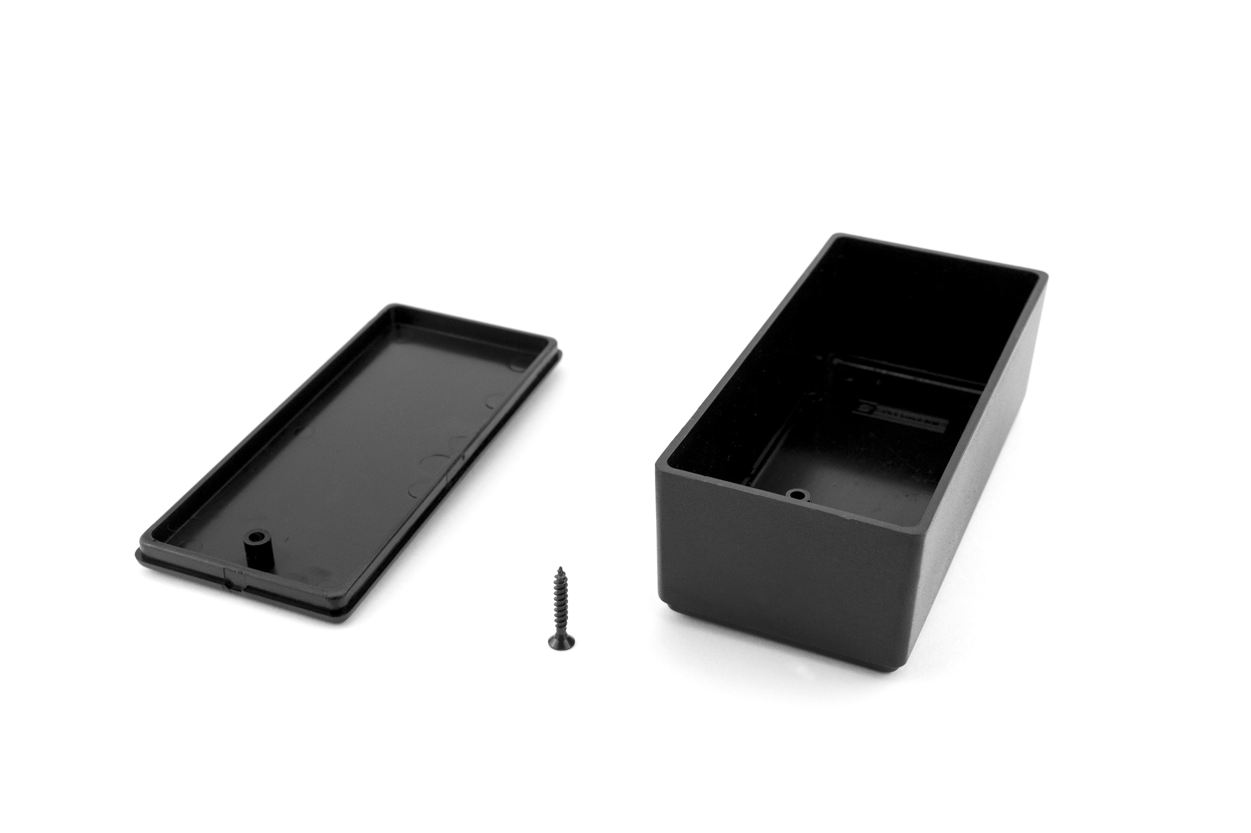 Medium rectangular, smooth top, screw together, black, material ABSLOW COST MACHINING.This product can be machined to your specifications at the point of manufacture.Contact us for details.