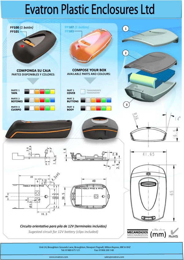 All of our keyfob enclosures can be customised to your exact requirements including CNC machining, silk screening and RFI shielding. Contact sales@evatron.com for more information.