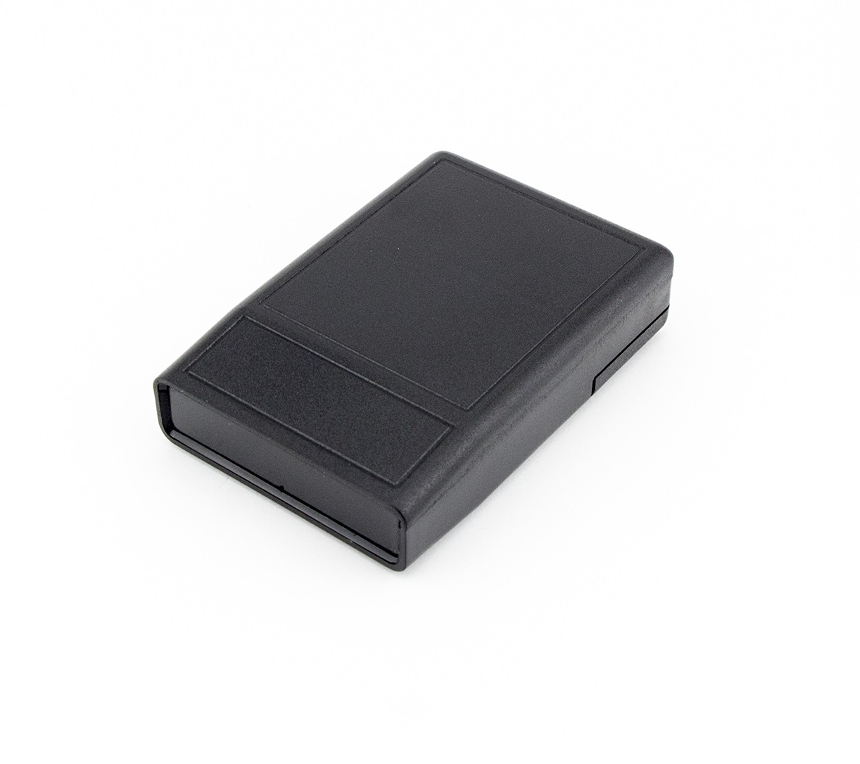 Small handheld remote control case moulded in black ABS material.