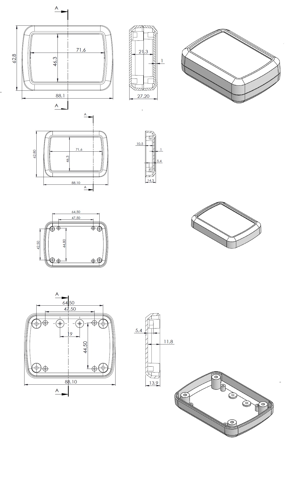They have a smooth curve to the corners so they fit comfortably in your hand and also giving them a modern appearance. The curves are also mirrored in the recessed area positioned on the top face which allows the mounting of labels and membranes.