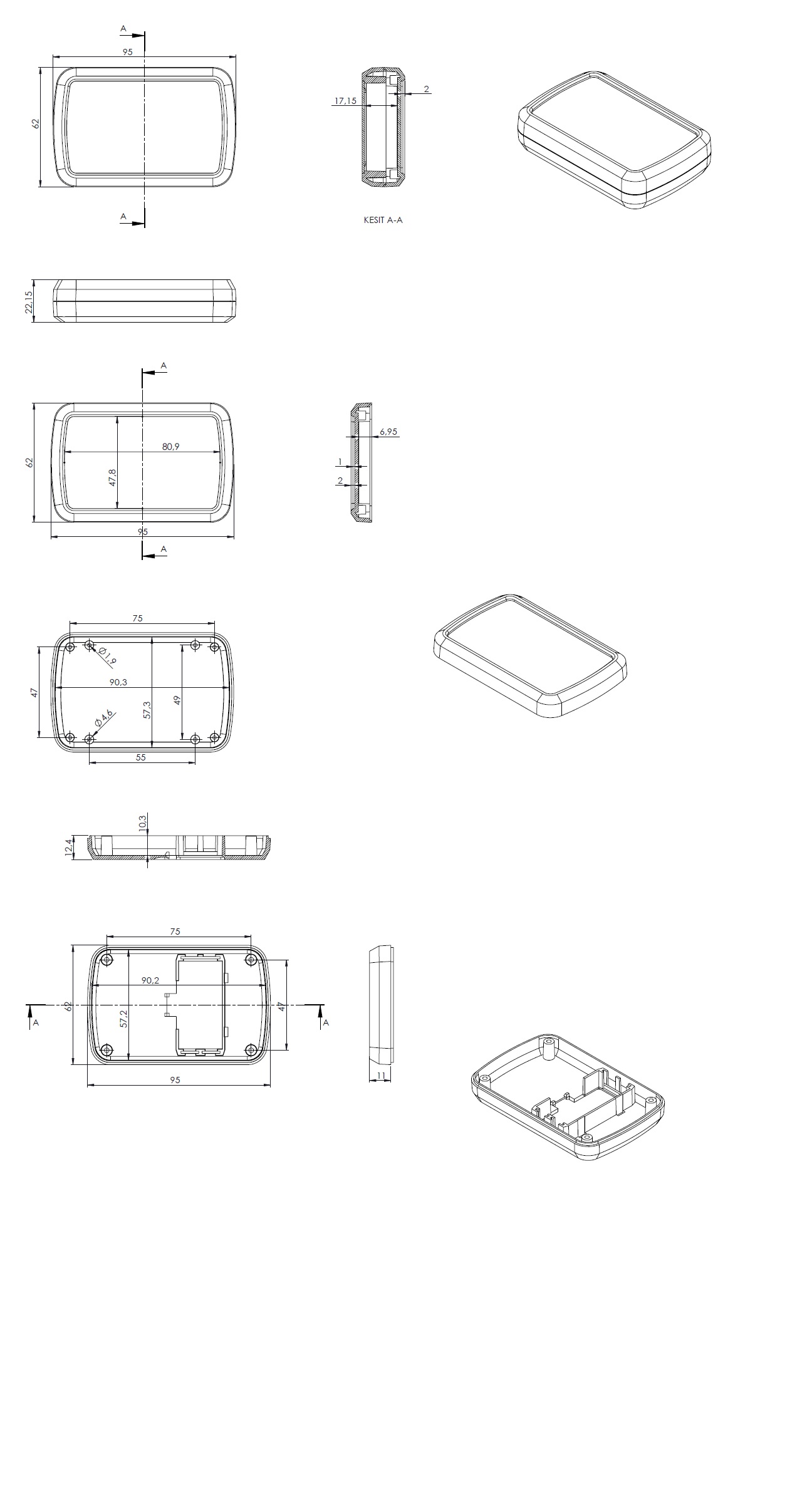 Internally the enclosure has a 2AAA battery compartment PCB mounts in the lid and base.