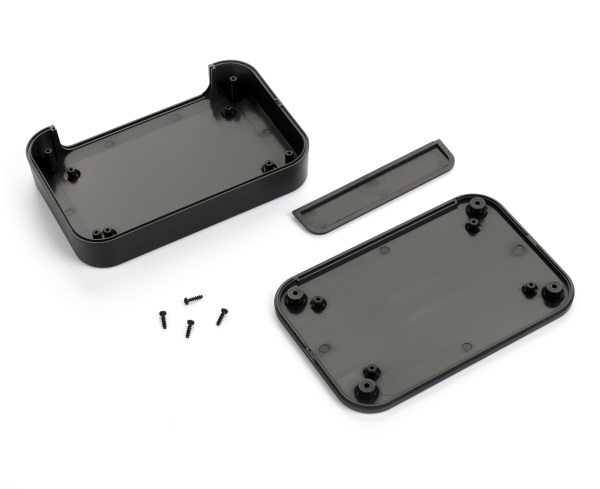 The enclosure comes complete with PCB mounts in both the lid and base with a removeable panel on one side of the enclosure.
