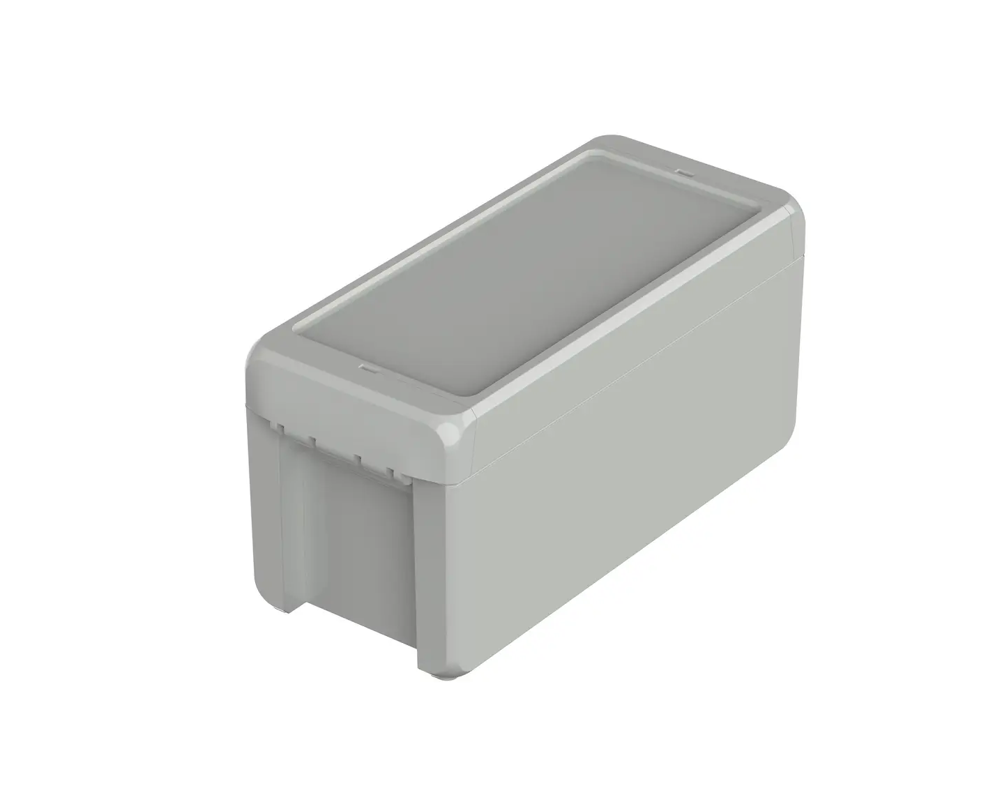 The enclosure compromises a base, lid and two catches which clip to the lid and base to seal the enclosure. These catches effortlessly clip into place and allow the lid to be hinged, they also conceal the screw fixing points to further secure the enclosure. Once the clips are in position the Bocube can offer ingress protection up to IP68 capable of submersion to 1.2 meters up to two hours.