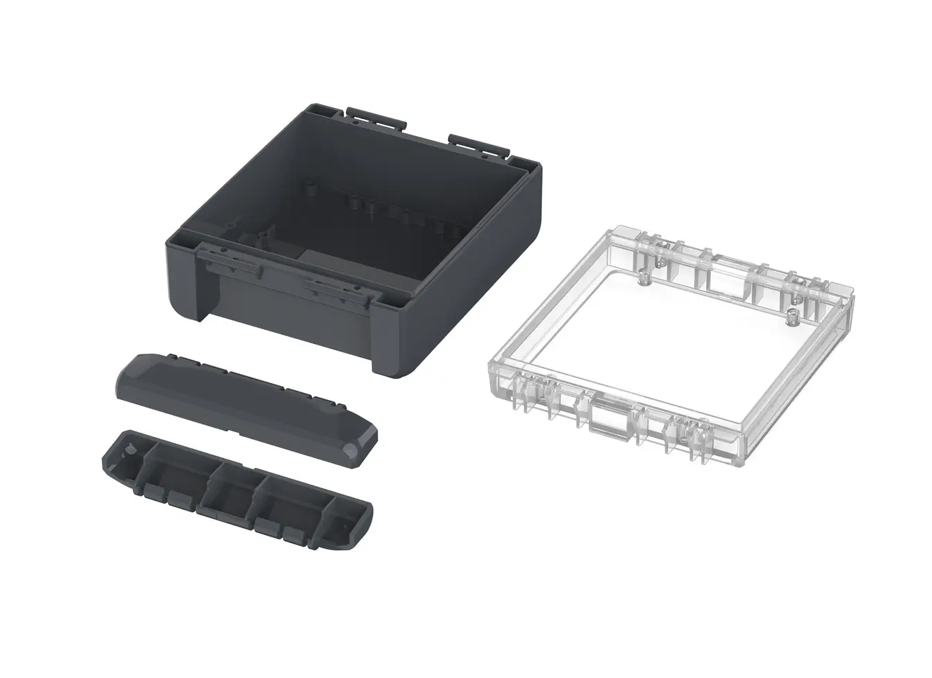 The enclosure compromises a base, lid and two catches which clip to the lid and base to seal the enclosure. These catches effortlessly clip into place and allow the lid to be hinged, they also conceal the screw fixing points to further secure the enclosure. Once the clips are in position the Bocube can offer ingress protection up to IP68 capable of submersion to 1.2  meters up to two hours.