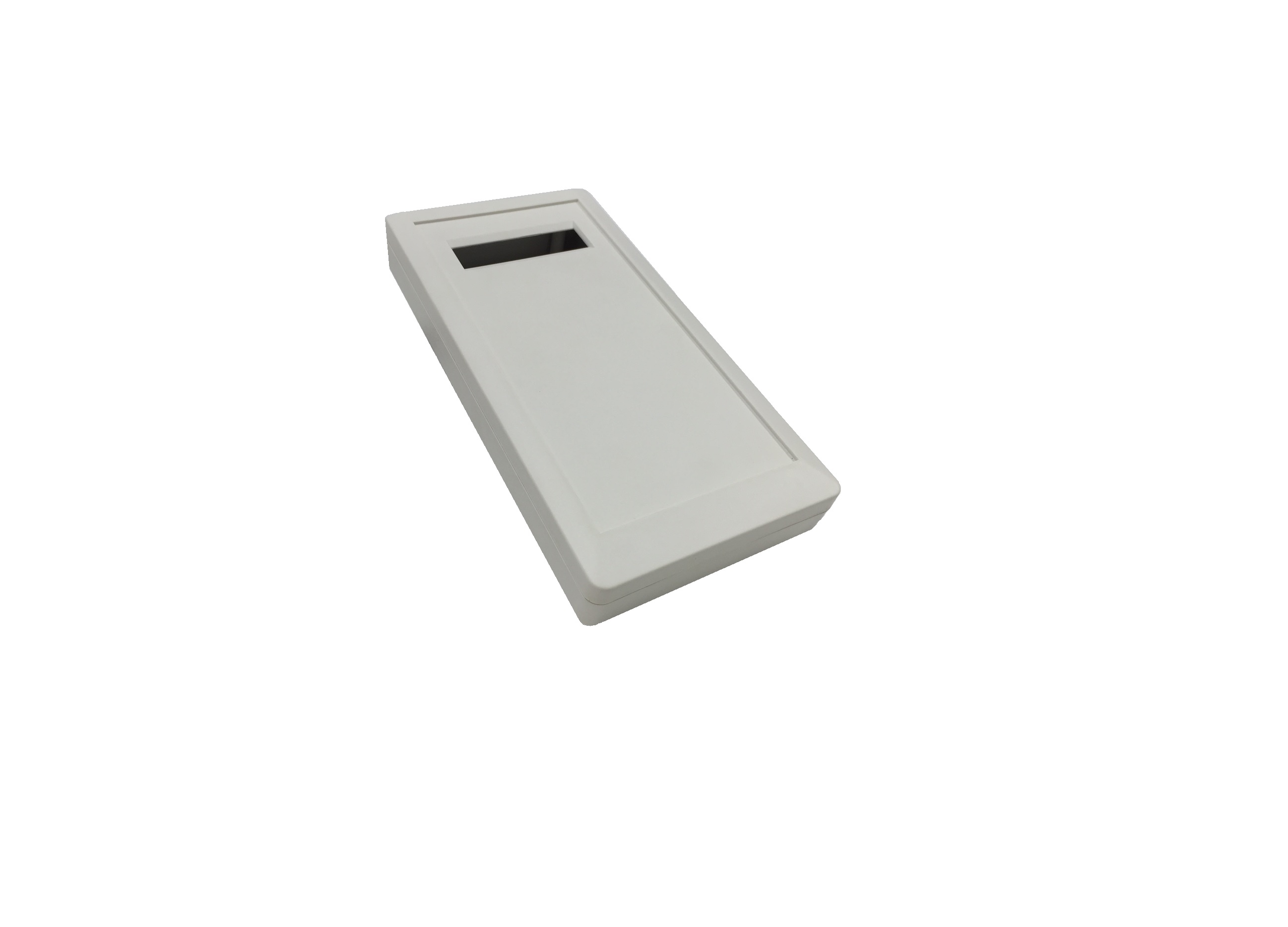 This model has a battery compartment on the back of the enclosure for housing 1 x 9V battery or 2 x AA batteries. The front face of the handheld enclosure has a cut out suitable for LCD and a recessed area suitable for membrane keypads measuring 129.5 x 68mm an alternate model without the LCD cut out is available (ES107) . PCB mounts are situated in both the top and base of the unit allowing the user to mount more than one PCB.