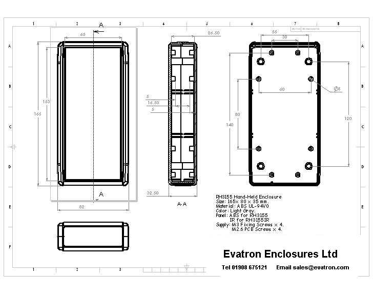 Large hand held ABS flame retardant, 94V-0 light Grey case with internal PCB mounts and PCB slots. Removable front panel in ABS plastic or Infra red. All fixings supplied.