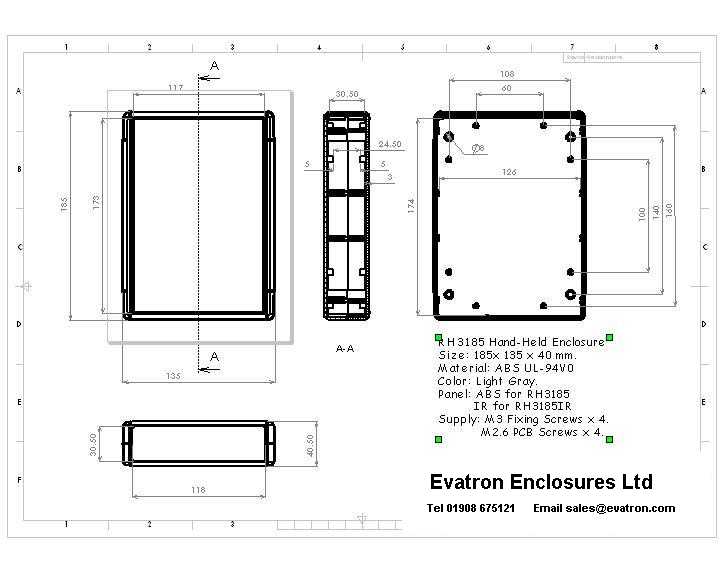 Large hand held ABS flame retardant, 94V-0 light Grey case with internal PCB mounts and PCB slots. Removable front panel in ABS plastic or Infra red. All fixings supplied.