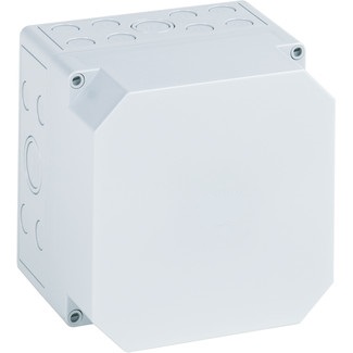IP66 Polystyrene Junction box with cable gland knockouts.- 4 x M32/40 24 x M20 , colour grey RAL 6018, top cover is opaque grey