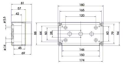IP66 Polystyrene Junction box with metric cable gland knockouts and transparent top.- 14 x M16/20, colour grey RAL 6018,