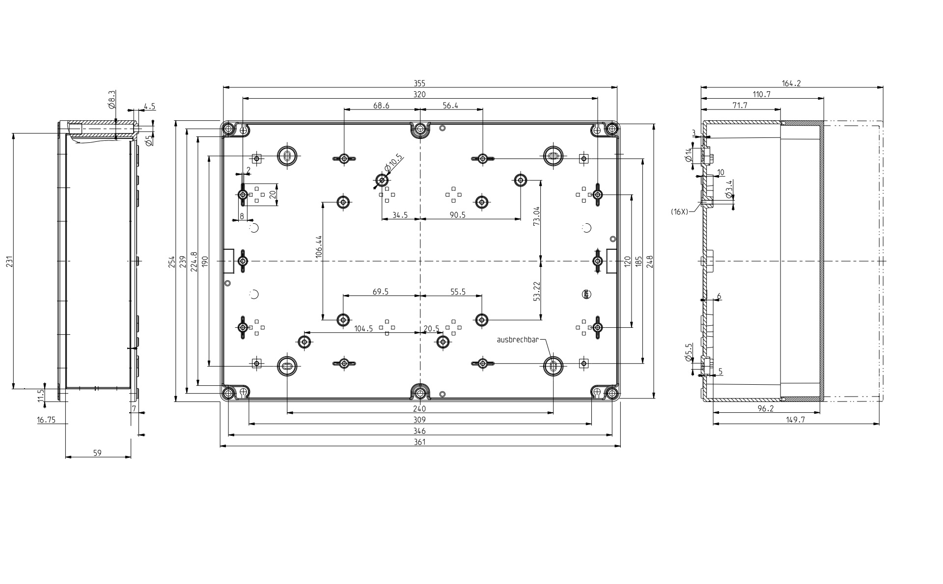 360 × 254 × 111 mm |