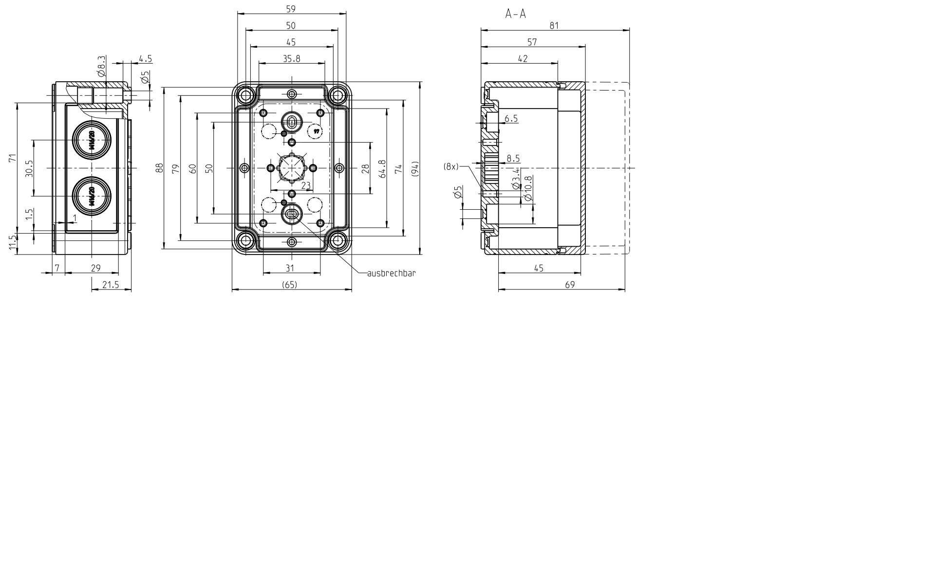 IP66 Polycarbonate Junction box without cable gland knockouts. colour grey RAL 6018, top cover is opaque grey